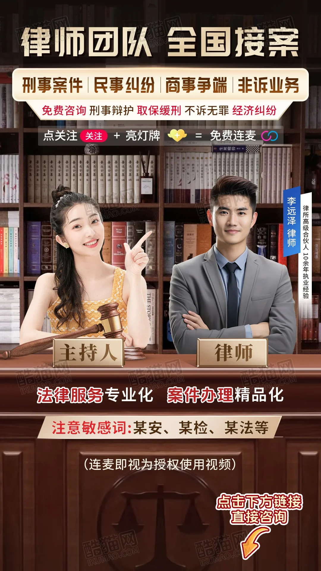 【律师直播图设计】法律讲座直播预告封面图案例,突出主题与讲师信息