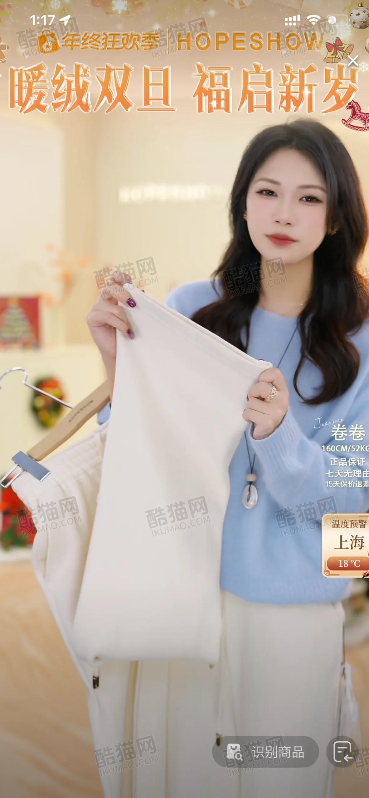 适合服装行业,尤其是冬季女装、暖绒裤、毛衣等品类,适用于年终促销、双旦(圣诞+元旦)主题的电商直播,能有效传递产品保暖属性和节日氛围。