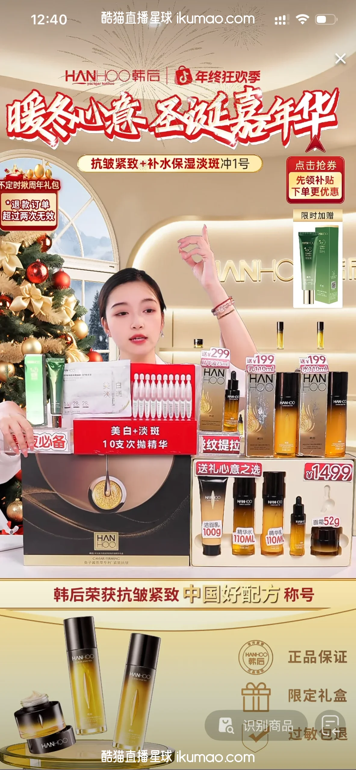 美妆行业直播间,尤其适合年终狂欢季、圣诞等节日促销活动,用于提升产品展示与转化率