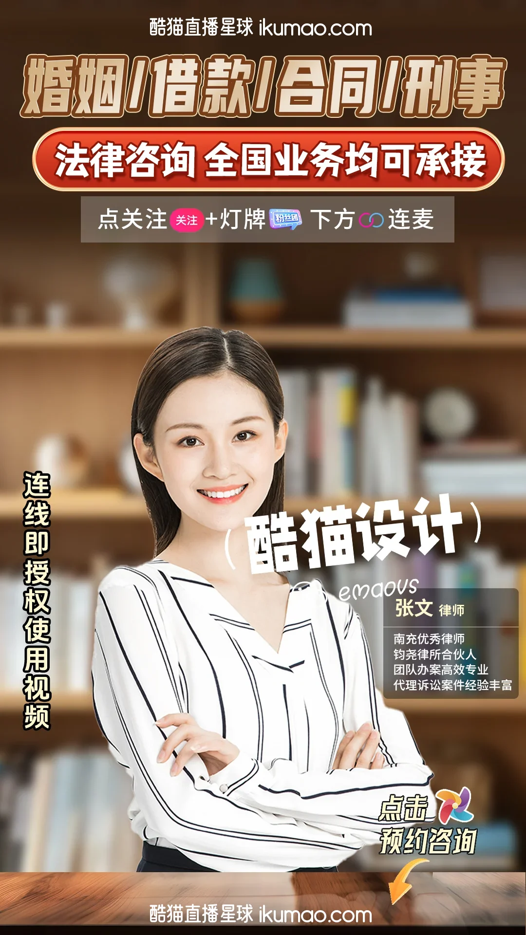 这种风格把专业和亲切结合得刚好,想打造有温度的律师直播间可以试试,效果肯定比纯背景好。