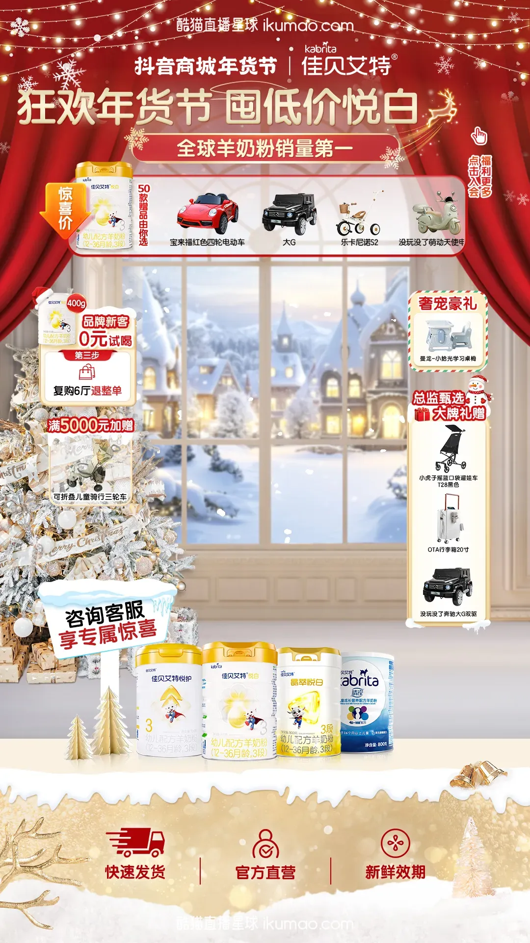 母婴奶粉直播图圣诞节直播间设计儿童食品背景贴片