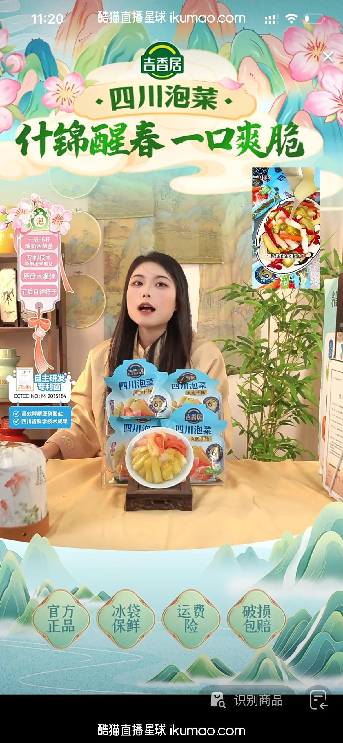 仔细看,主播桌上的泡菜包装和背景的春日元素呼应,还有那个‘什锦醒春’的标语,把产品特点和季节结合得刚好,感觉产品都变好吃了