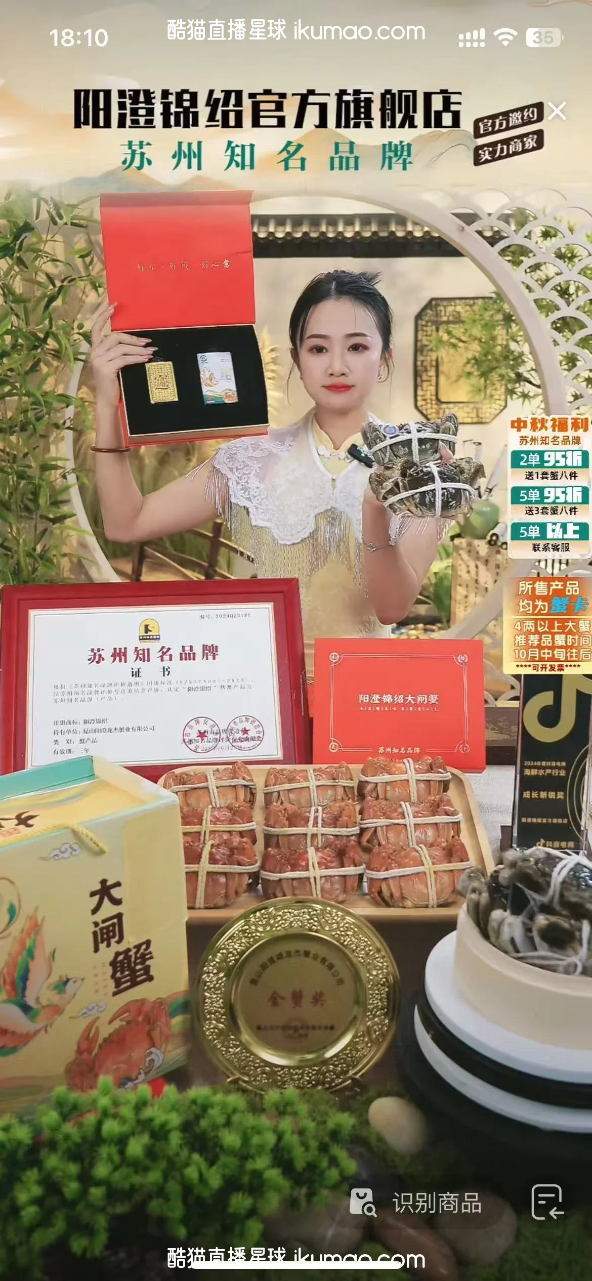 🔱 这种风格适合卖高端特产或礼品类的直播,比如大闸蟹、茶叶这些,能突出产品的品质感,让粉丝觉得买的是有面子又有品质的东西,中秋送礼刚好合适。